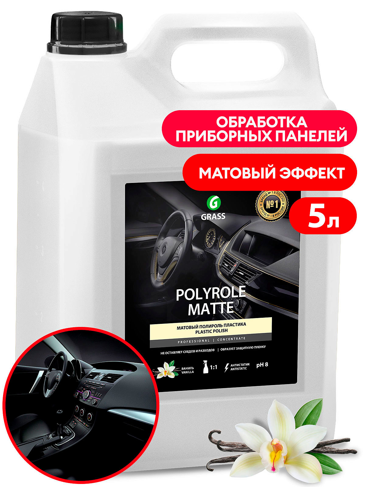 110269 GRASS полироль! для пластика 'polyrole matte' ваниль (канистра 5кг)\