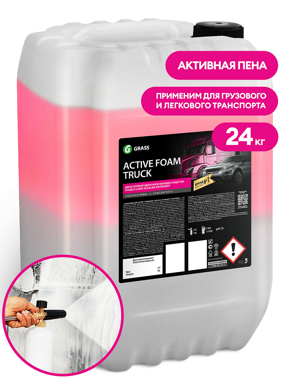 | Наименование | Шампунь для грузового авто двухкомпонентный 24кг Active Foam Truck GRASS |