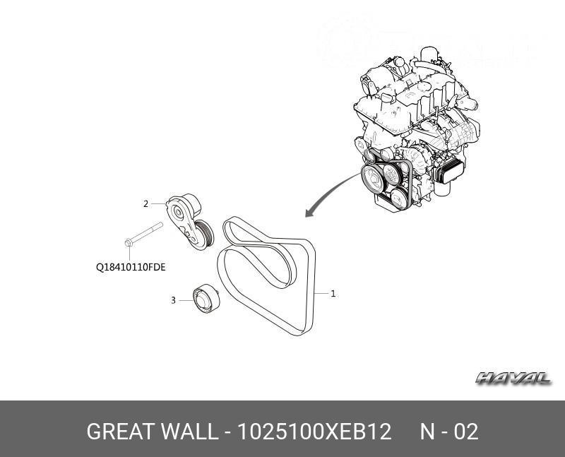 1025100XEB12 GREAT WALL Натяжитель приводного ремня HAVAL F7 с роликом OE