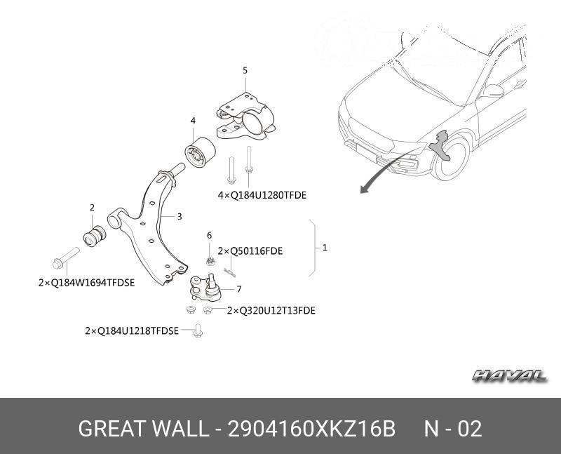 2904160XKZ16B GREAT WALL Сайлентблок HAVAL F7,F7x рычага переднего передний OE