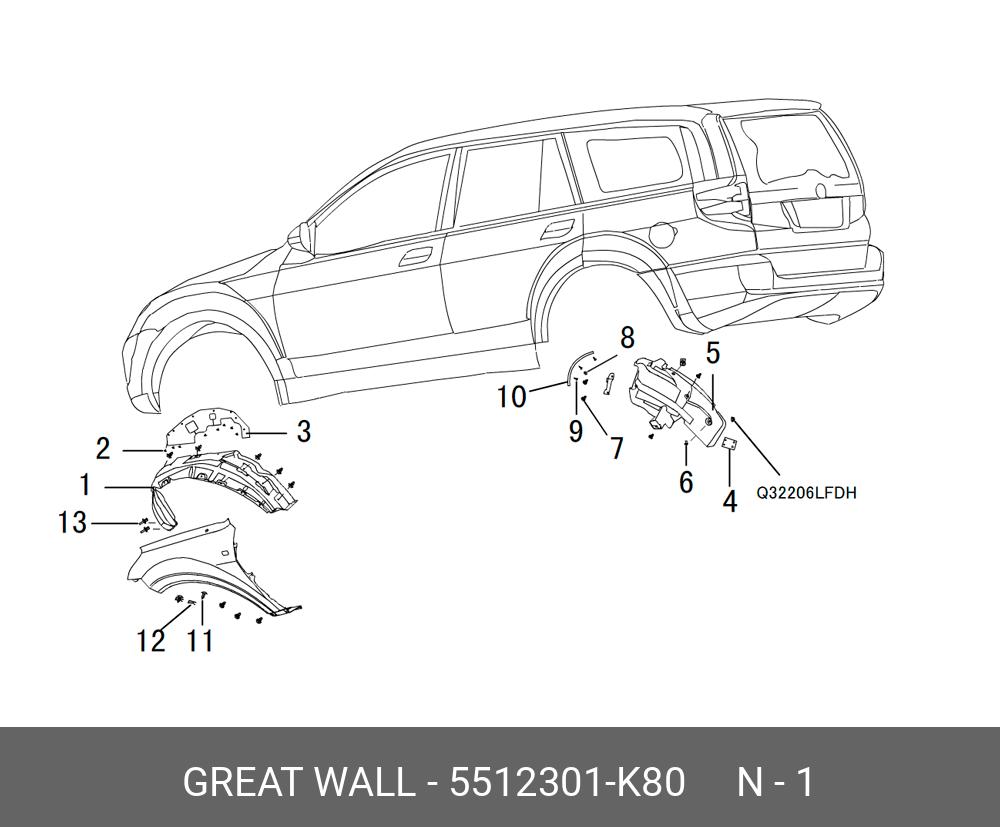 5512301-K80 GREAT WALL ПОДКРЫЛОК ПЕРЕДНЕГО ЛЕВОГО КОЛЕСА HOVER H5