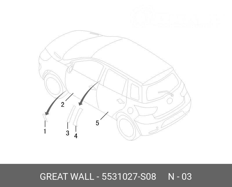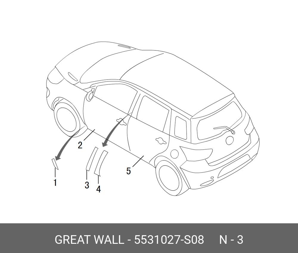 5531027S08 GREAT WALL 5531027-S08 НАКЛЕЙКА ПЕРЕДНЕЙ ЛЕВОЙ ДВЕРИ ВЕРТИКАЛЬНАЯ HOVER M4