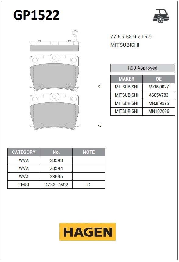 GP1522 HAGEN колодки дисковые задние!HAGEN\ Mitsubishi Montero Sport 3.0i/2.5TD 98>