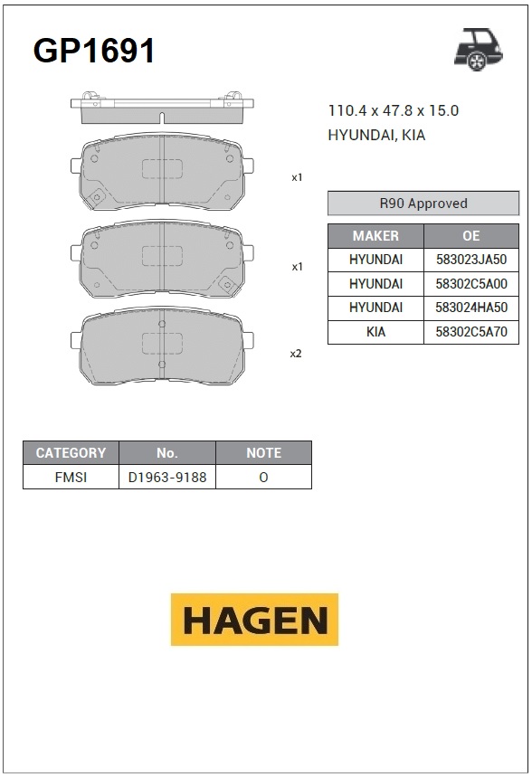 GP1691 HAGEN колодки дисковые задние!HAGEN\ KIA Sorento 14>/Carnival 01>