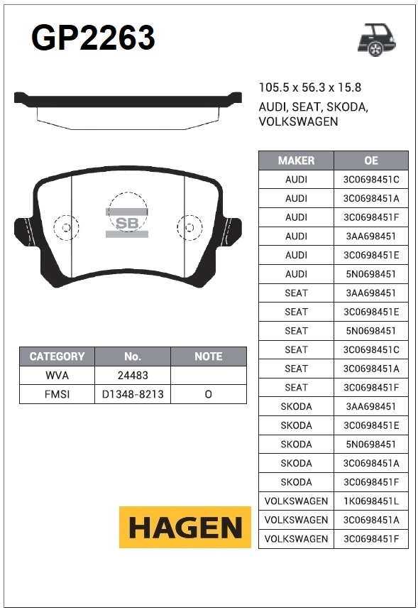 GP2263 HAGEN колодки дисковые задние! \ VW Tiguan 1.4TFSi/2.0TDi/2.0TFSi 07>