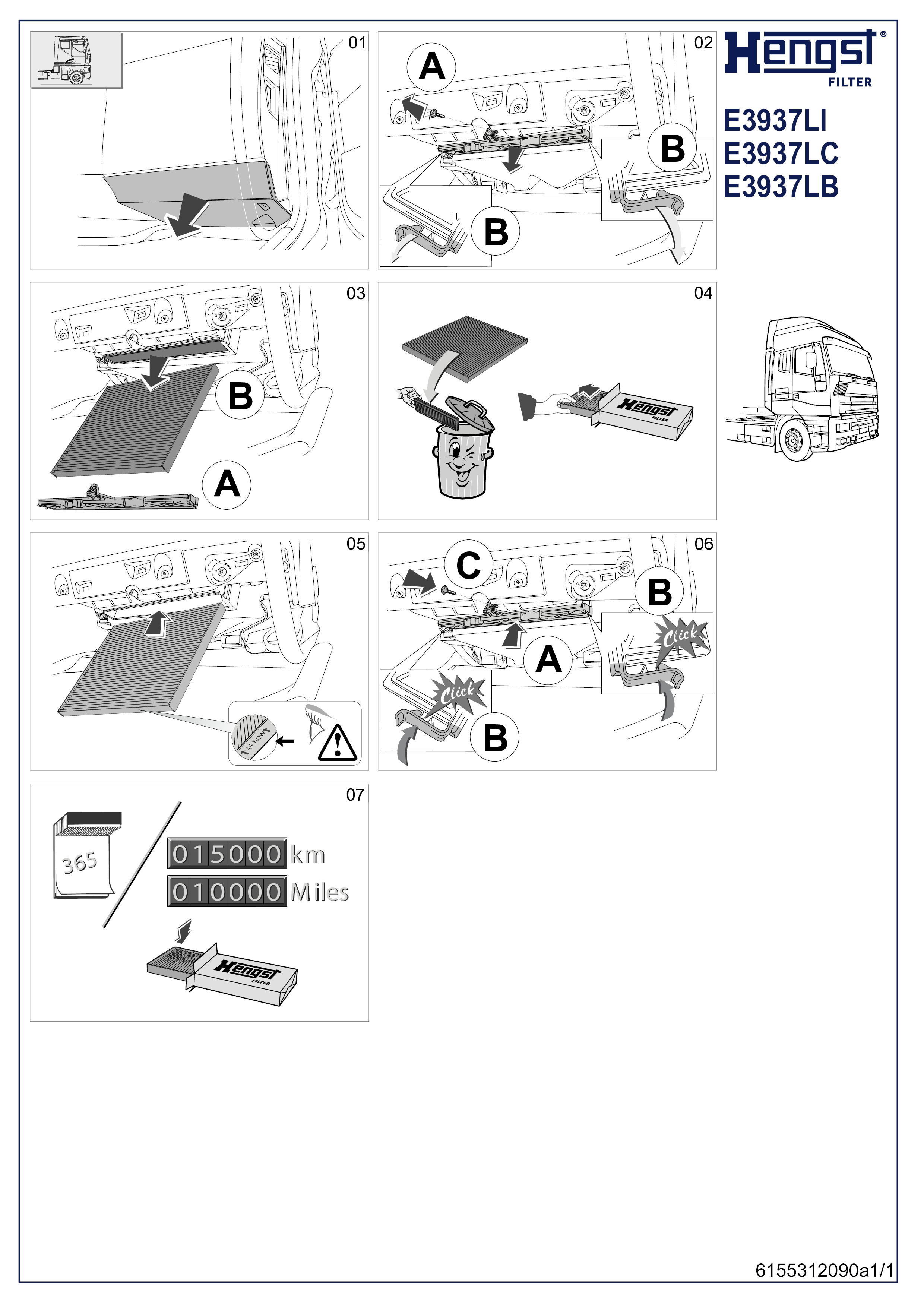 E3937LC HENGST Фильтр воздушный салона FH (G3), FH16 (G2), FM (G3), FMX Угольный фильтр