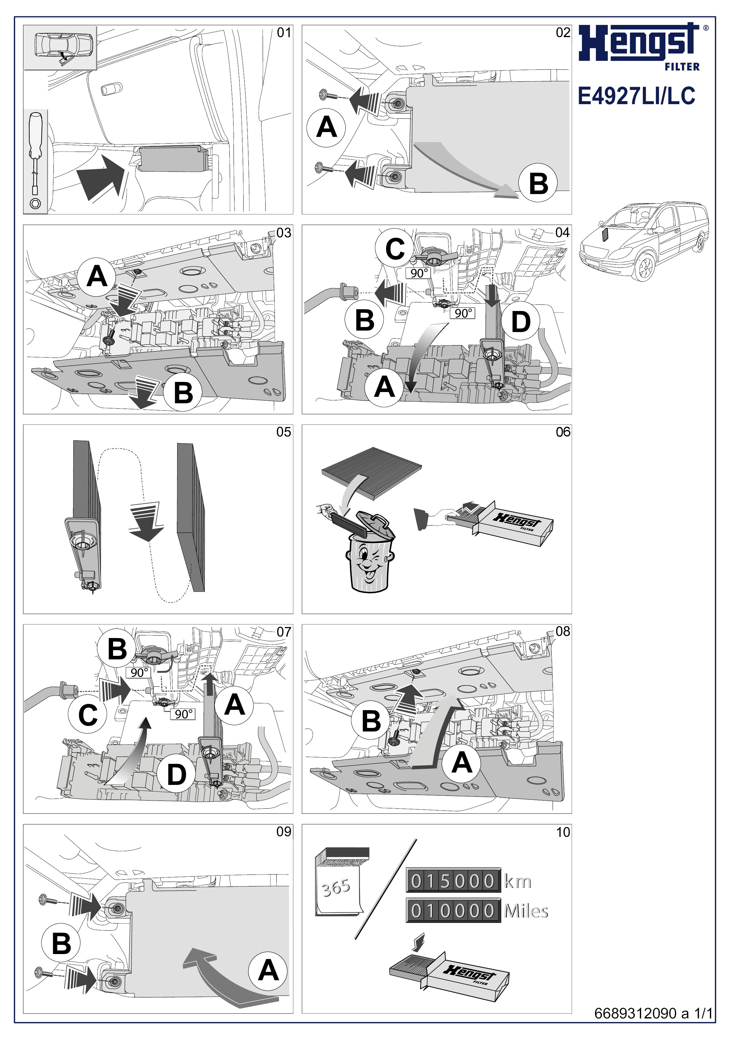 E4927LI HENGST Фильтр салона MB SPRINTER III 907/910 02/18-, V-class II W447, Vito III 14
