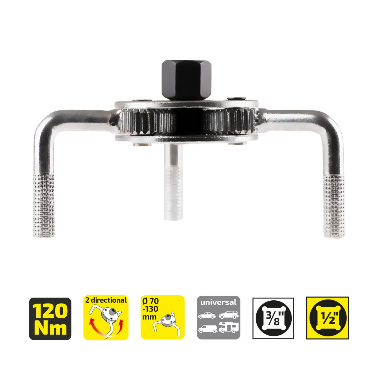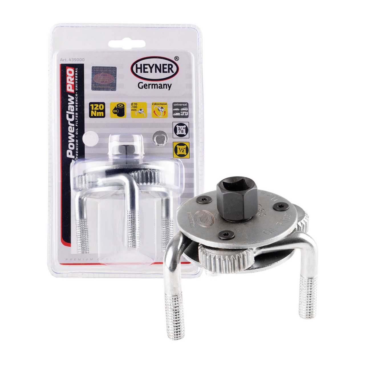 439000 ALCA Съемник фильтров масляных краб 70-130мм с адаптером 3/8"Fх1/2"M HEYNER