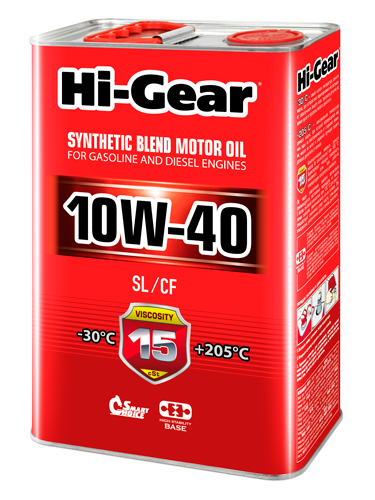 | Наименование | HI-GEAR 10W40 (4L) масло моторное! полусинт.\ API SL/CF, ACEA A3/B3/B4, MB 229.1 |