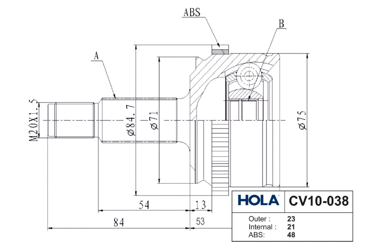 CV10-038 HOLA ШРУС ВАЗ Vesta (наружный) КПП JH3/21807