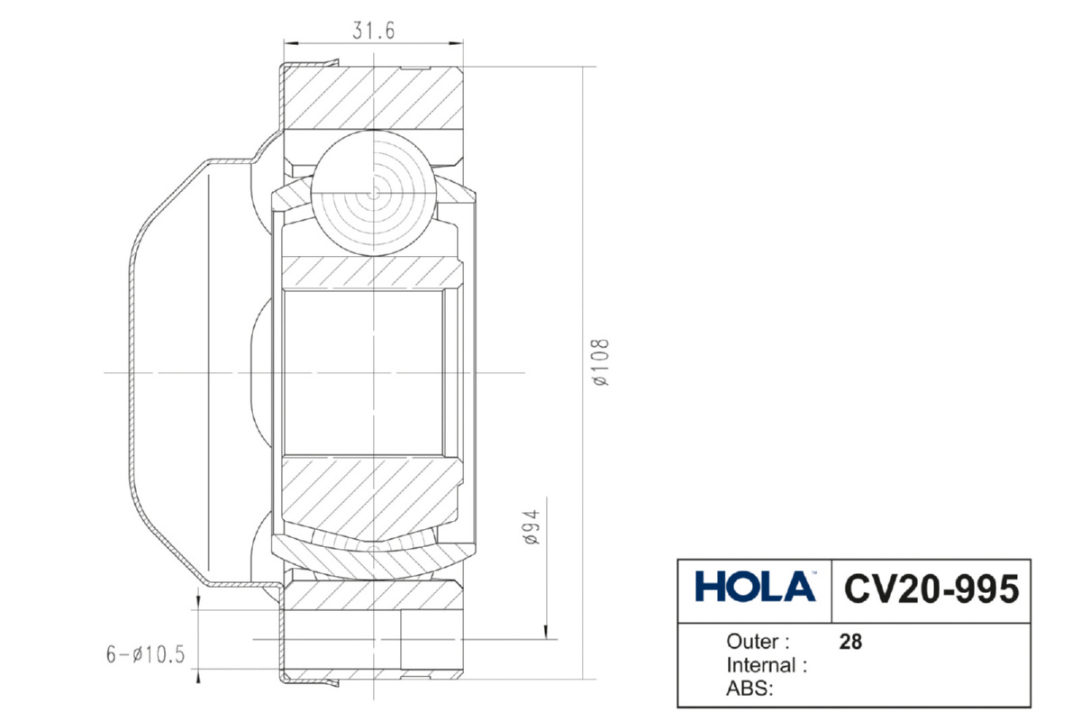 CV20995 HOLA ШРУС внутренний 28 шл., левый/правый HOLA