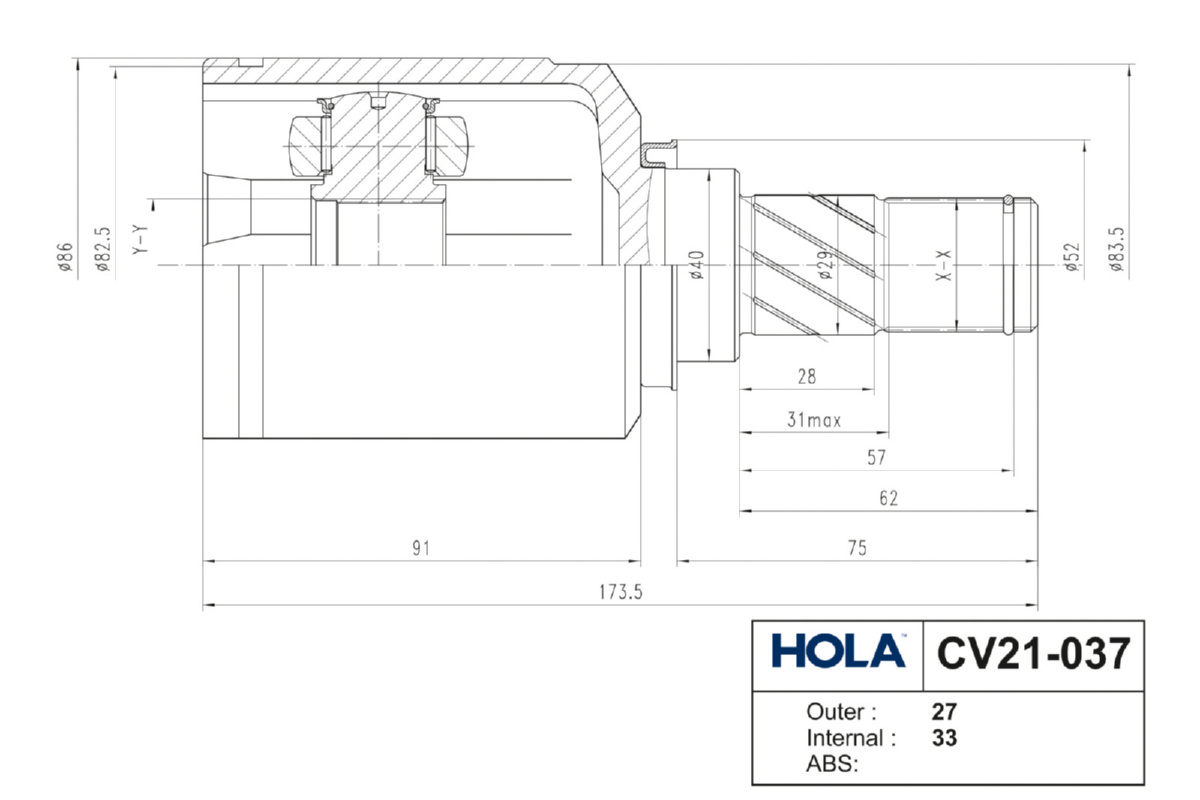 CV21037 HOLA NISSAN QASHQAI (J10) (2006>) ЛЕВЫЙ 33x40x27