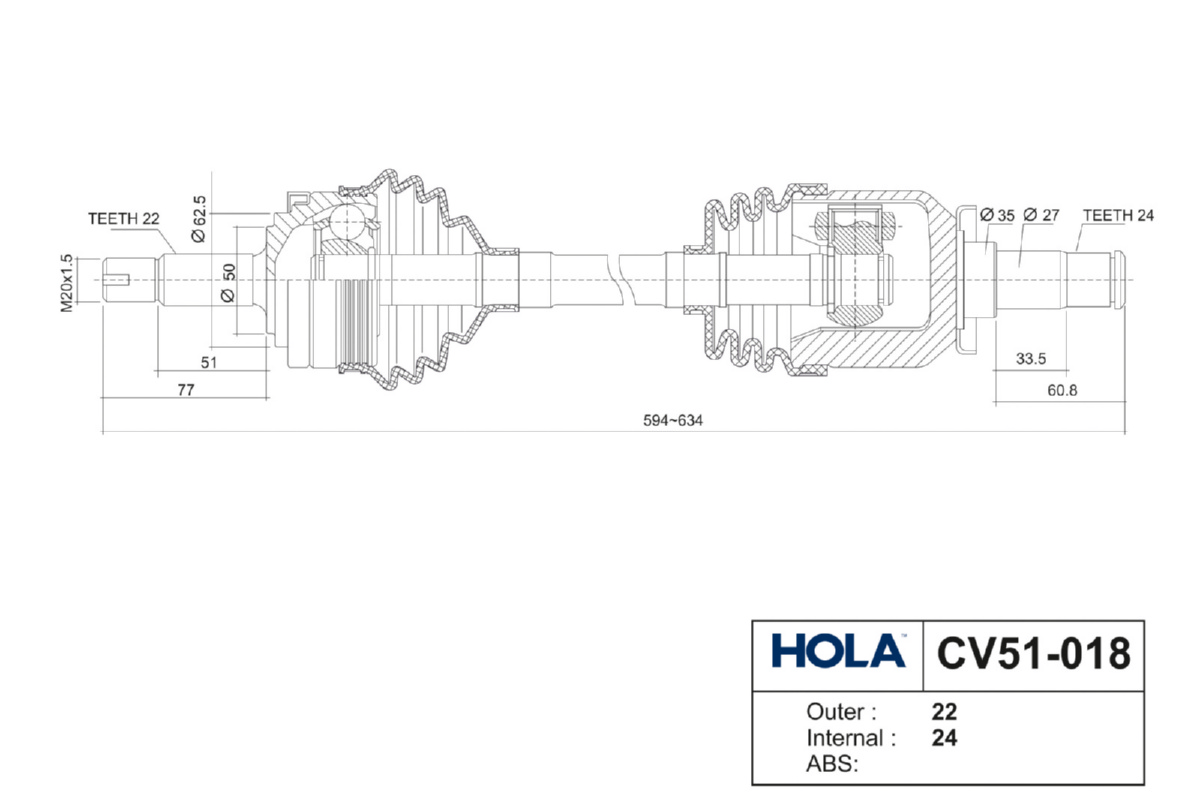 CV51-018 HOLA Привод для а/м ВАЗ 2110 (левый, короткий) "HOLA"