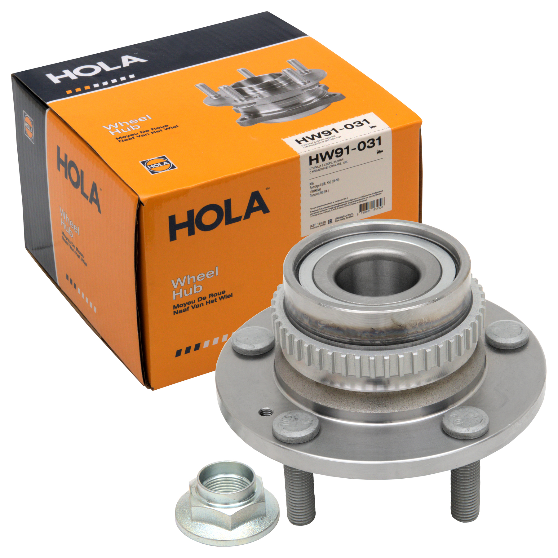 HW91-031 HOLA Ступица в сборе задняя, с кольцом сенсора ABS, KIA Sportage II (JE, KM) 2004-201