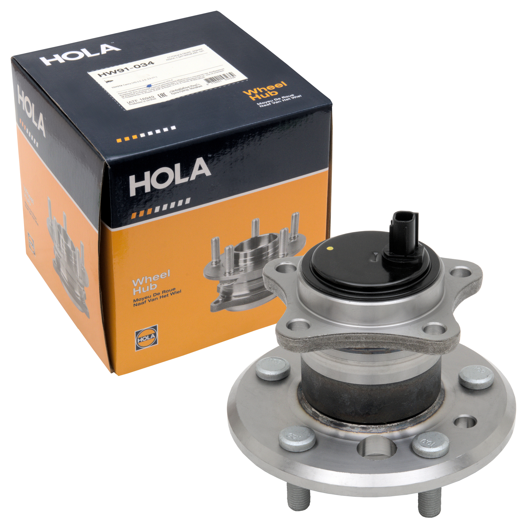 HW91-034 HOLA Ступица в сборе задняя, левая, с датчиком ABS, TOYOTA Camry (V5) 2.0,2,5,3.5 (11