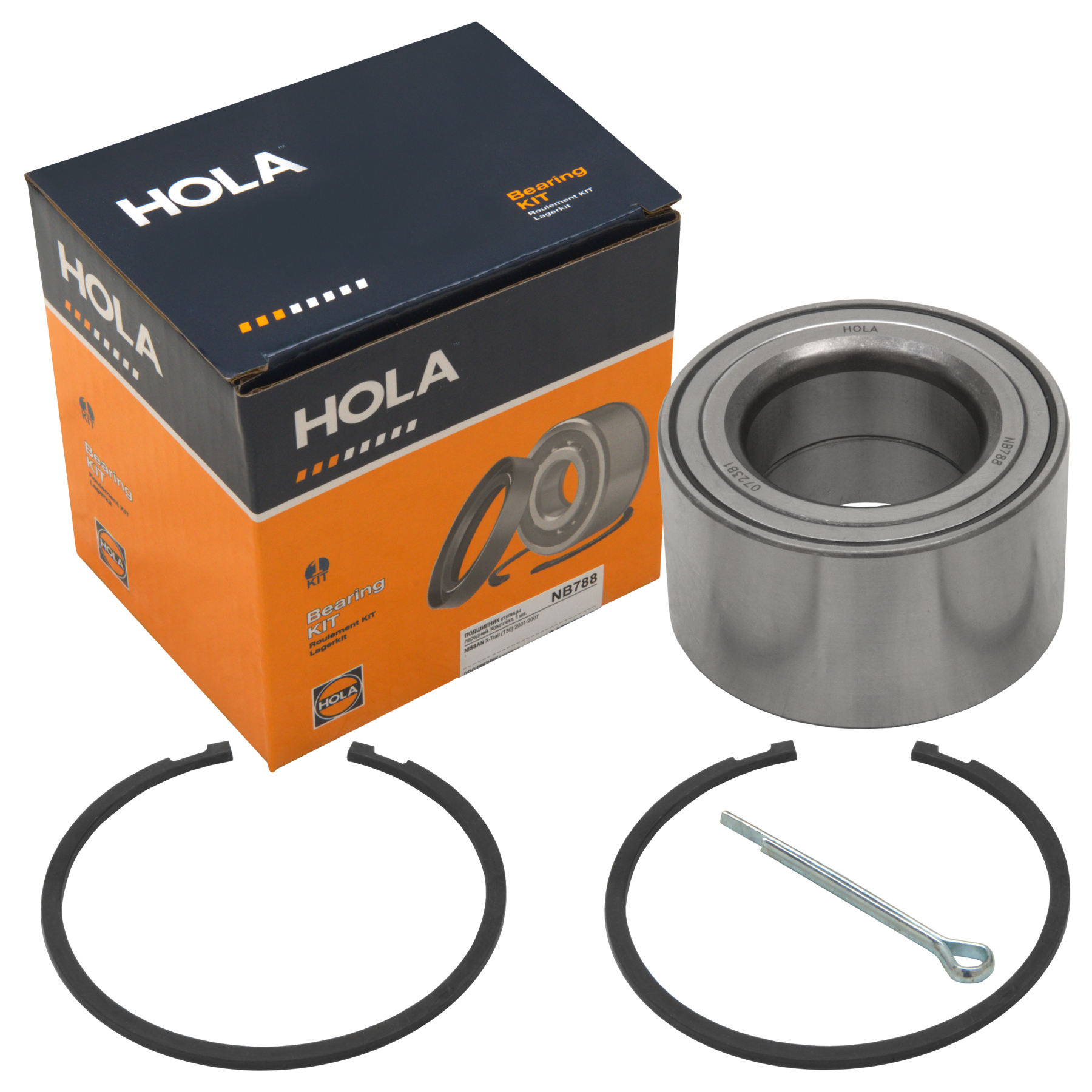 NB788 HOLA Подшипник ступицы, комплект (подшипник, стопорное кольцо - 2шт., шплинт), перед