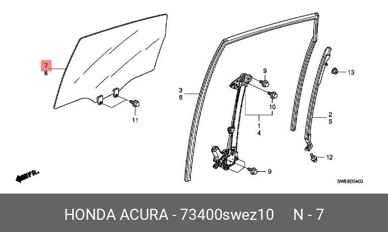 73400SWEZ10 HONDA Стекло двери HONDA CR-V (06-) задней правой OE