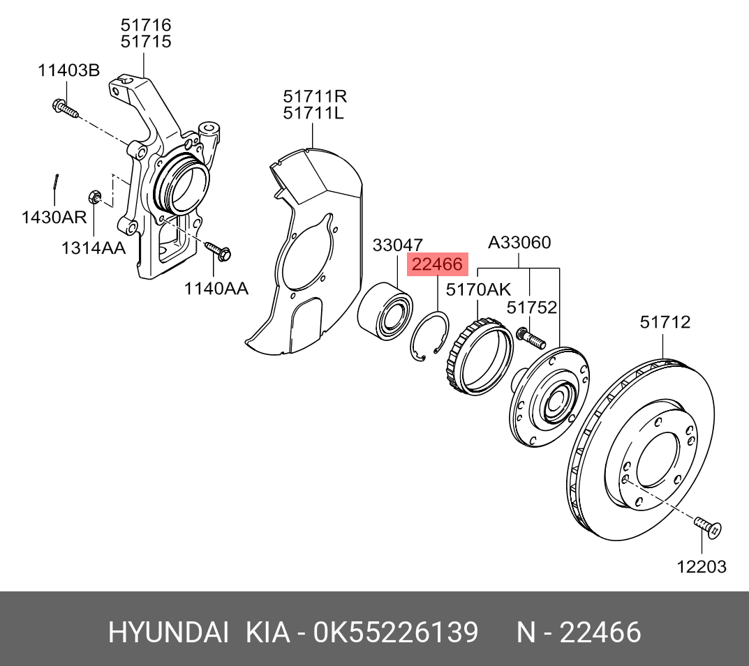 0K55226139 HYUNDAI KIA Кольцо стопорное KIA Sorento (06-) подшипника ступицы передней OE