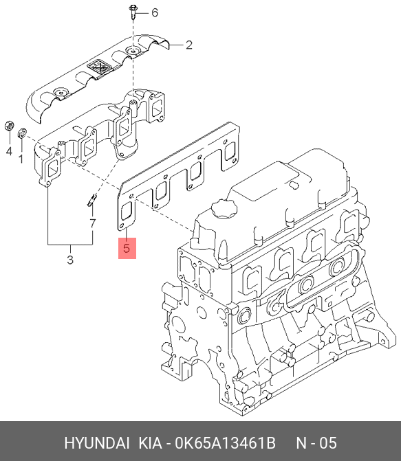 0K65A13461B HYUNDAI KIA Прокладка коллектора KIA Bongo 3 (06-) (2.7/3.0) выпускного (на 4 цилиндра) OE