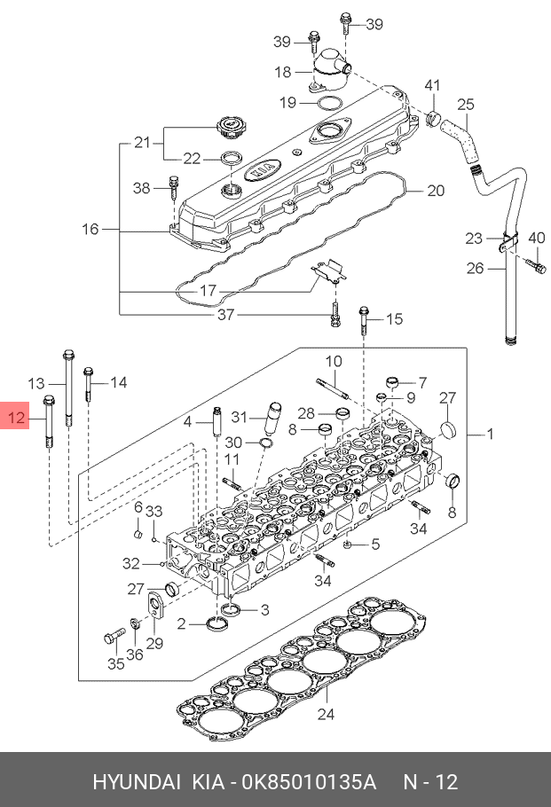 0K85010135A HYUNDAI KIA Болт HYUNDAI HD120,AeroTown дв.D6DA19/22 головки блока средний OE