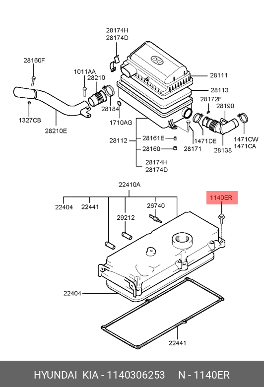 1140306253 HYUNDAI KIA Болт HYUNDAI Accent (20-) натяжителя цепи OE