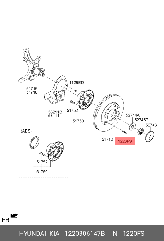 1220306147B HYUNDAI KIA Болт HYUNDAI Starex H-1 (07-15) крепления диска тормозного заднего OE