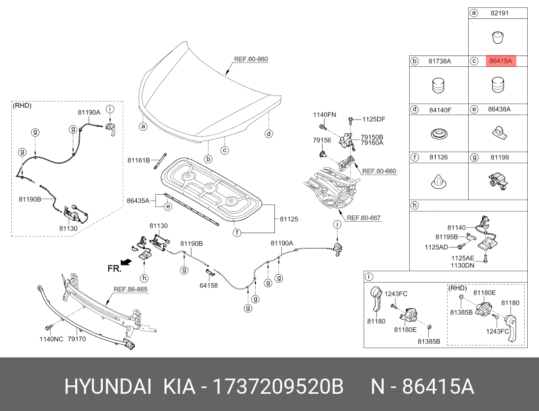 1737209520B HYUNDAI KIA Буфер HYUNDAI i30 (17-) капота OE