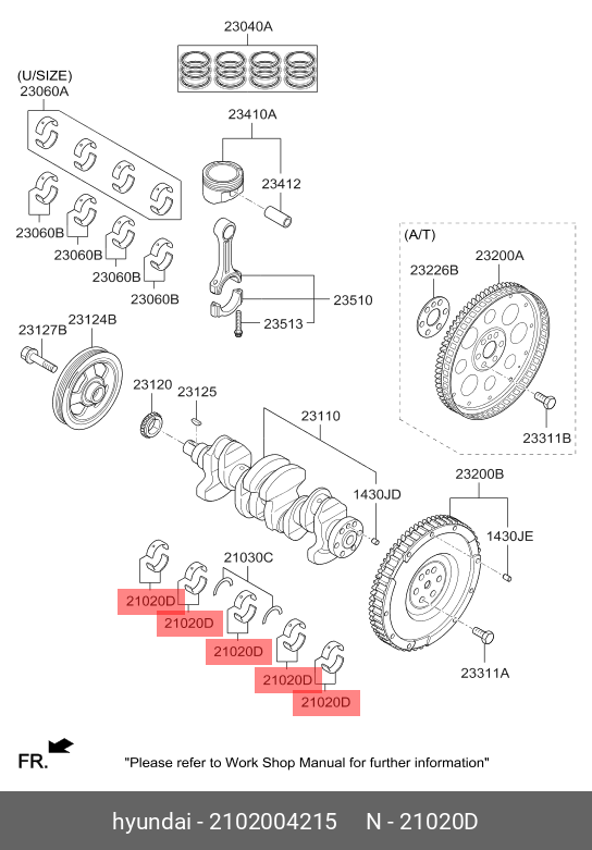 2102004215 HYUNDAI KIA Вкладыши HYUNDAI Solaris (18-) (1.4) коренные STD-B комплект (2шт.) OE