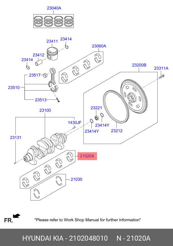2102048010 HYUNDAI KIA Вкладыши HYUNDAI HD65,78,БОГДАН дв.D4GA коренные d+0.00 комплект (10шт.) OE