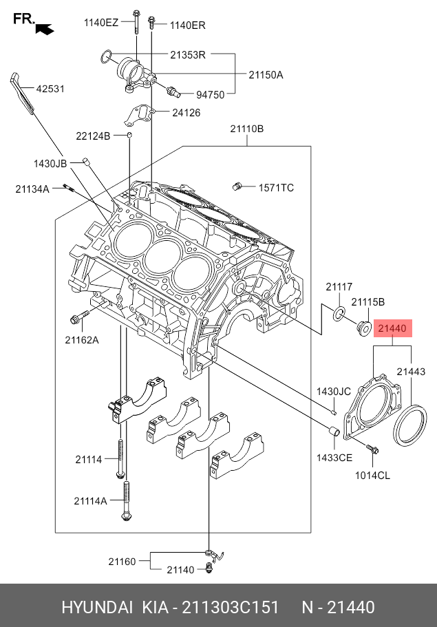 211303C151 HYUNDAI KIA Сальник коленвала HYUNDAI ix55 (08-) (3.8) задний с фланцем OE
