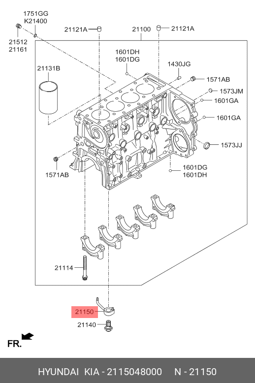 2115048000 HYUNDAI KIA НАПРАВЛЯЮЩАЯ МАСЛОЗАБОРНИКА БЛОКА ЦИЛИНДРОВ 21150-48000