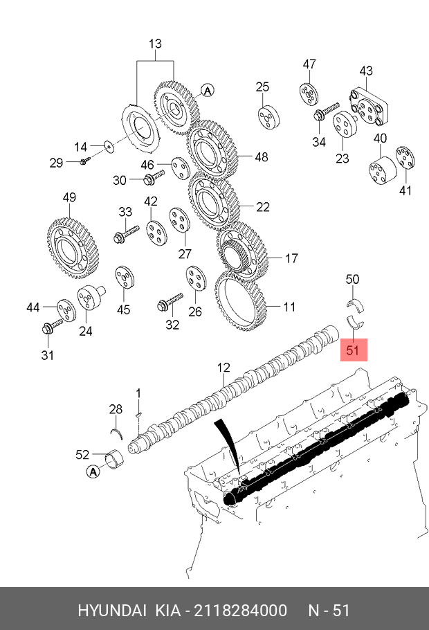 2118284000 HYUNDAI KIA Вкладыш HYUNDAI HD250,260,270,370,500,Universe дв.D6CC/CA/CB38/41 распредвала ни