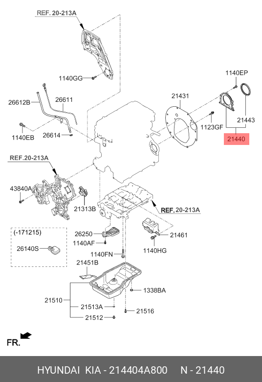 214404A800 HYUNDAI KIA Сальник коленвала HYUNDAI ЕХ8 задний с корпусом ОЕ