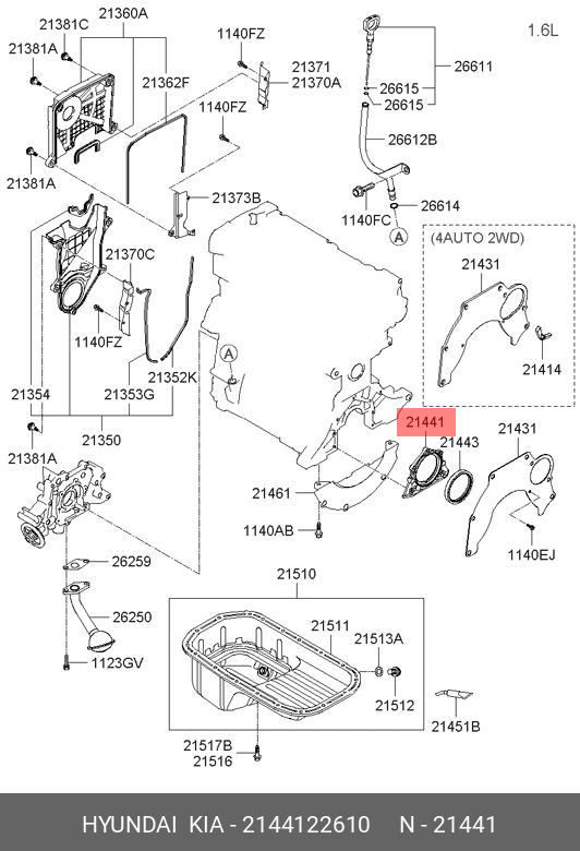 2144122610 HYUNDAI KIA Корпус сальника коленвала