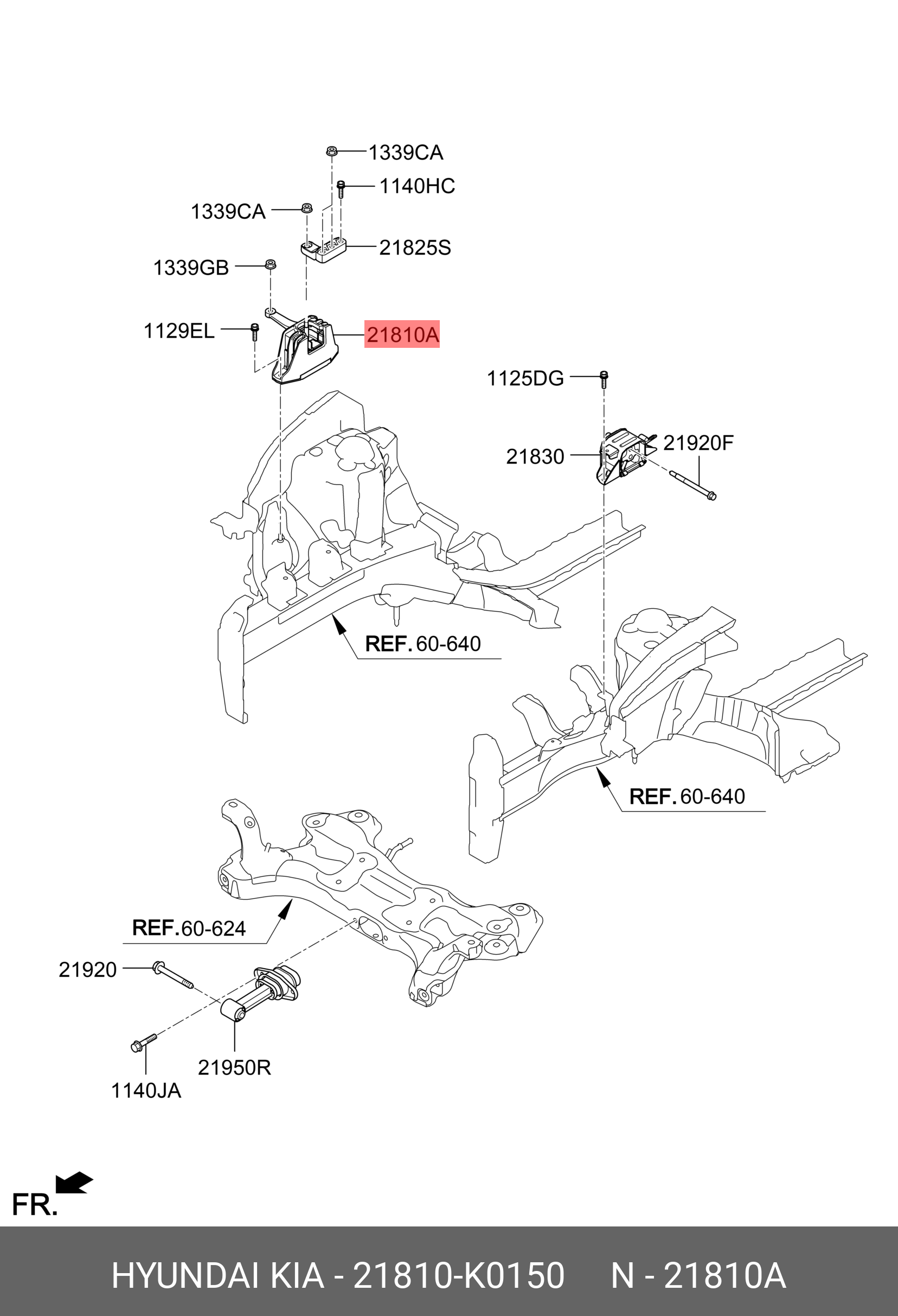 21810K0150 HYUNDAI KIA Опора двигателя KIA Cerato (18-),Soul (19-) правая АКПП OE