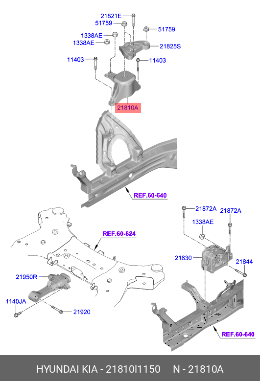 21810L1150 HYUNDAI KIA Опора двигателя HYUNDAI Sonata (19-) KIA K5 (20-) (2.5) правая OE