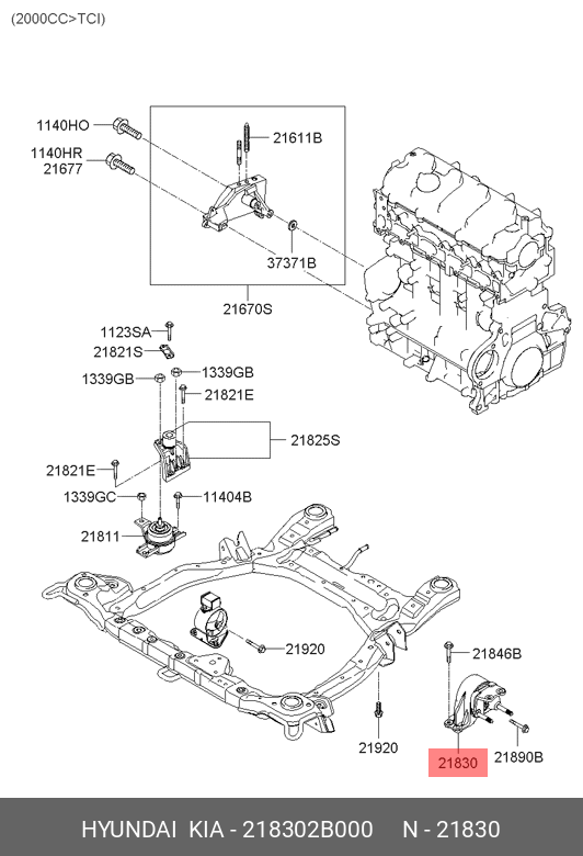 218302B000 HYUNDAI KIA Опора двигателя HYUNDAI Santa Fe (05-) левая МКПП OE
