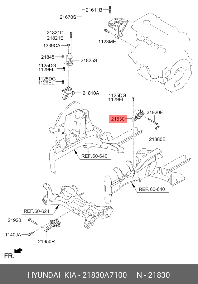 21830A7100 HYUNDAI KIA Опора двигателя KIA Cerato (13-) левая АКПП OE