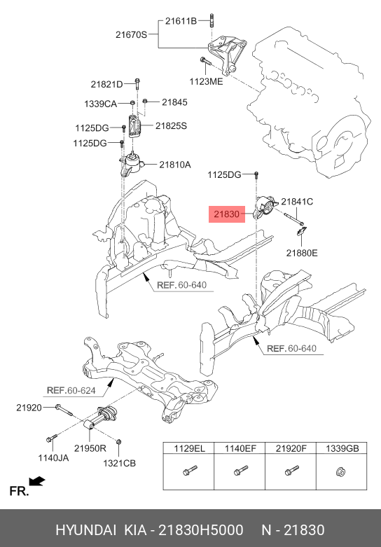 21830H5000 HYUNDAI KIA Опора двигателя HYUNDAI Solaris (17-) KIA Rio (17-) передняя левая OE