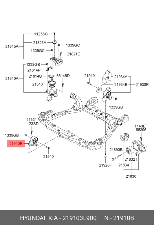 219103L900 HYUNDAI KIA Опора двигателя HYUNDAI Sonata NF (04-) передняя АКПП OE