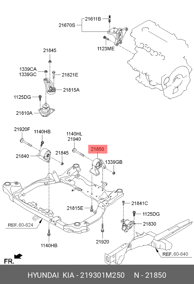 219301M250 HYUNDAI KIA Подушка KIA Cerato (09-) двигателя задняя OE