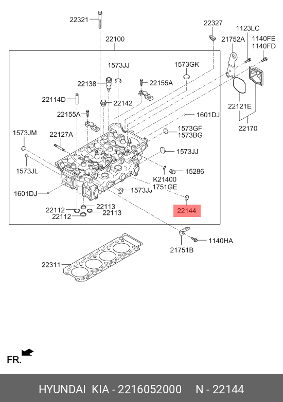 2216052000 HYUNDAI KIA Кольцо уплотнительное HYUNDAI HD65,78,120 дв.D4GA,D6GA ГБЦ (19.5х30х10.2) OE