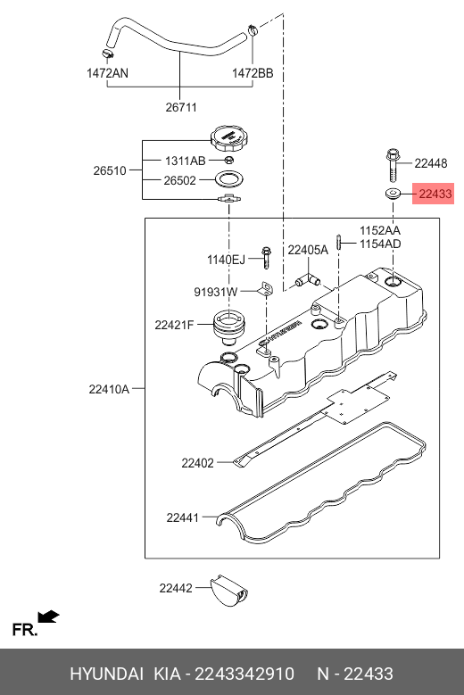 2243342910 HYUNDAI KIA Сальник HYUNDAI H-100 крышки клапанной OE