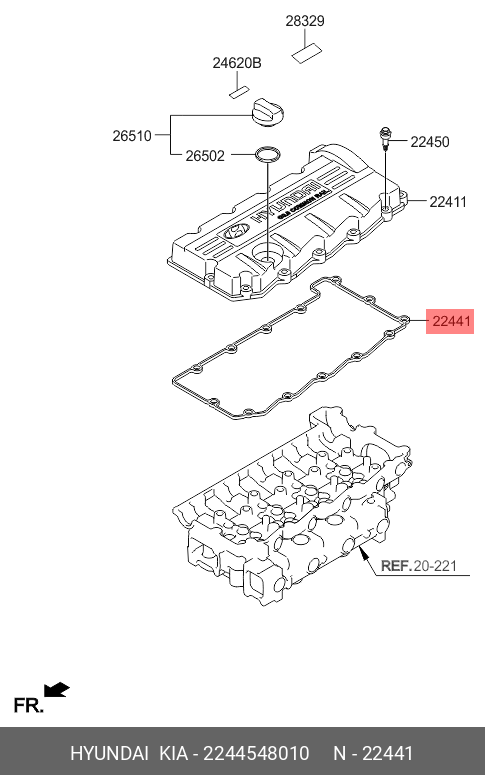 2244548010 HYUNDAI KIA Прокладка крышки клапанной HYUNDAI HD65,78,БОГДАН дв.D4GA OE
