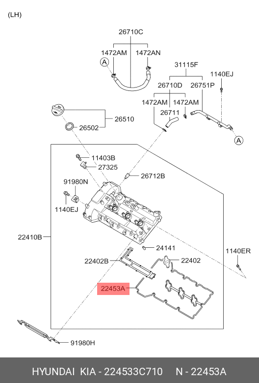 224533C710 HYUNDAI KIA Прокладка клапанной крышки двигателя 22453-3C710