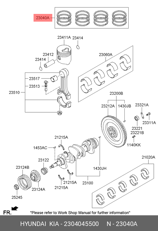 2304045500 HYUNDAI KIA Кольца поршневые HYUNDAI HD65,78,County дв.D4DD d+0.00 комплект OE