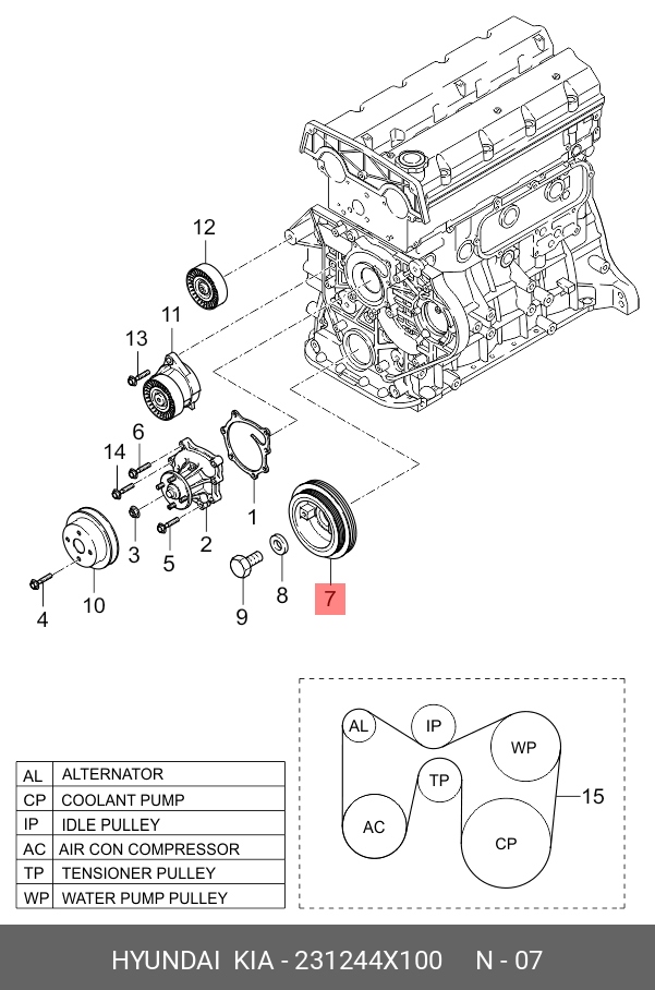 231244X100 HYUNDAI KIA Шкив KIA Bongo 3 (06-) (2.9-J3) коленвала OE