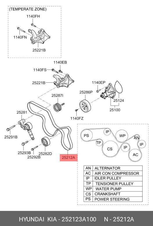 252123A100 HYUNDAI KIA Ремень приводной поликлиновой 7PK1935 HYUNDAI ix55 (07-) (3.0) OE
