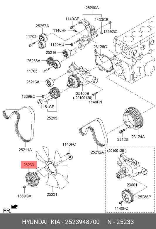 2523948700 HYUNDAI KIA Вискомуфта HYUNDAI HD65,78 (17-) привода вентилятора OE