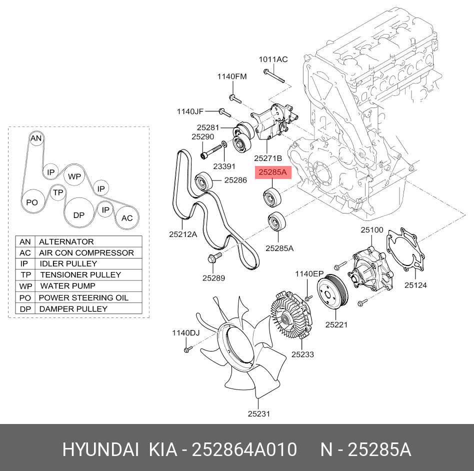 252864A010 HYUNDAI KIA Ролик приводного ремня HYUNDAI Porter 2,Starex H-1 (07-) дв.D4CB KIA Sorento обв
